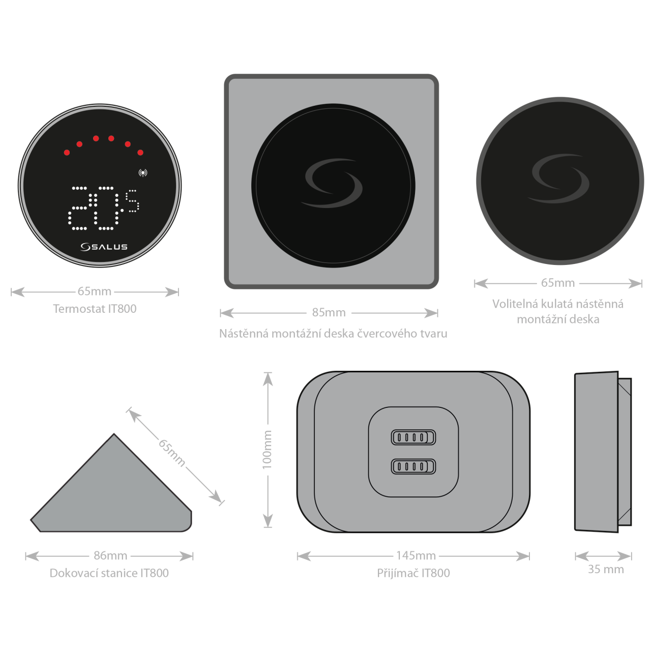 Termostat SALUS iT800 WIFI je moderním prvkem systému SALUS Smart Home, který přináší maximální pohodlí a plnou kontrolu nad teplotou v domácnosti. Díky připojení k WiFi a ovládání přes aplikaci SALUS Premium Lite můžete zařízení spravovat odkudkoli – ať jste doma, v práci nebo na dovolené.