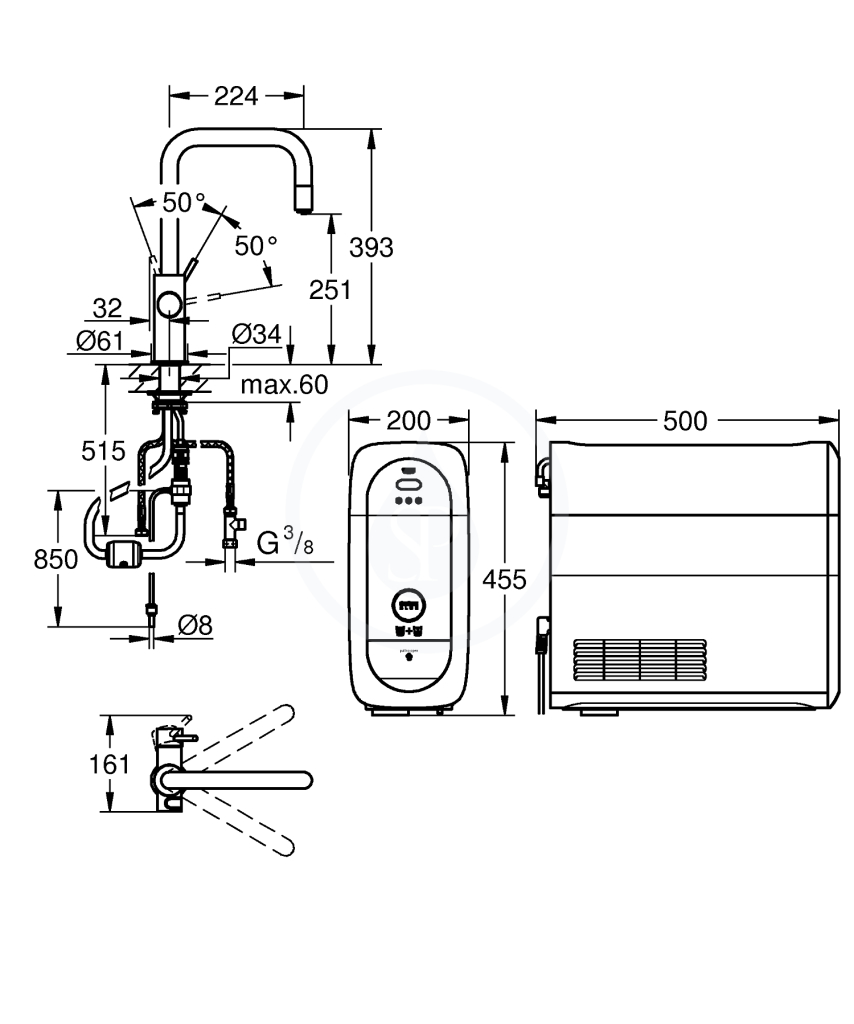 Dřezová baterie Connected, s chladícím zařízením a filtrací, supersteel