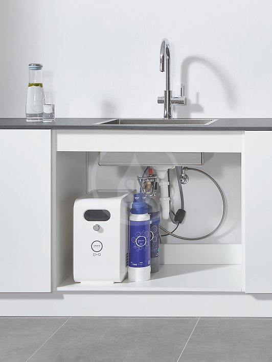 Baterie GROHE Blue přeměňuje běžnou kohoutkovou vodu na čistou, neperlivou stolní vodu, která je zcela bezpečná k pití a má vynikající chuť způsobenou inteligentní filtrační technologií. Voda protéká filtrem zachycujícím nevyžádané látky, jako např. chlór nebo těžké kovy, které mohou způsobovat nepříjemný zápach nebo ovlivňovat chuť vody. Jemný částicový filtr zachytí i ty nejmenší prvky a ve vodě tak zůstane pouze čistá, skvělá a svěží chuť. Filtr rovněž snižuje tvrdost vody, jeho výměna  je rychlá a bezproblémová. Čerstvá voda zbavená nevyžádaných látek tak bude vždy k dispozici přímo z kohoutku, vhodná i pro použití v domácích spotřebičích. Také káva a čaj z ní uvařený bude mít plnější a rafinovanější chuť.