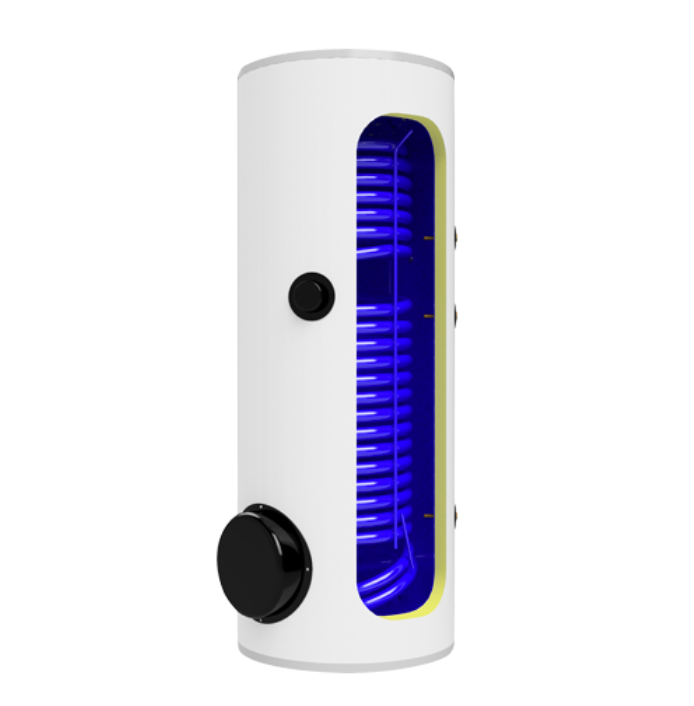 Stacionární zásobník s velkoplošným výměníkem vhodný pro připojení k tepelným čerpadlům a dalším nízkoteplotním zdrojům.