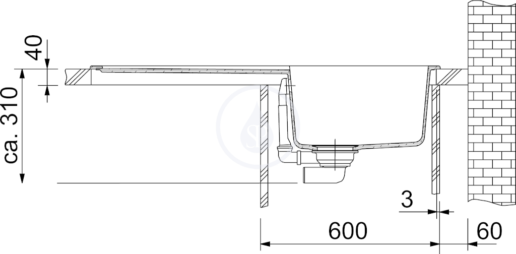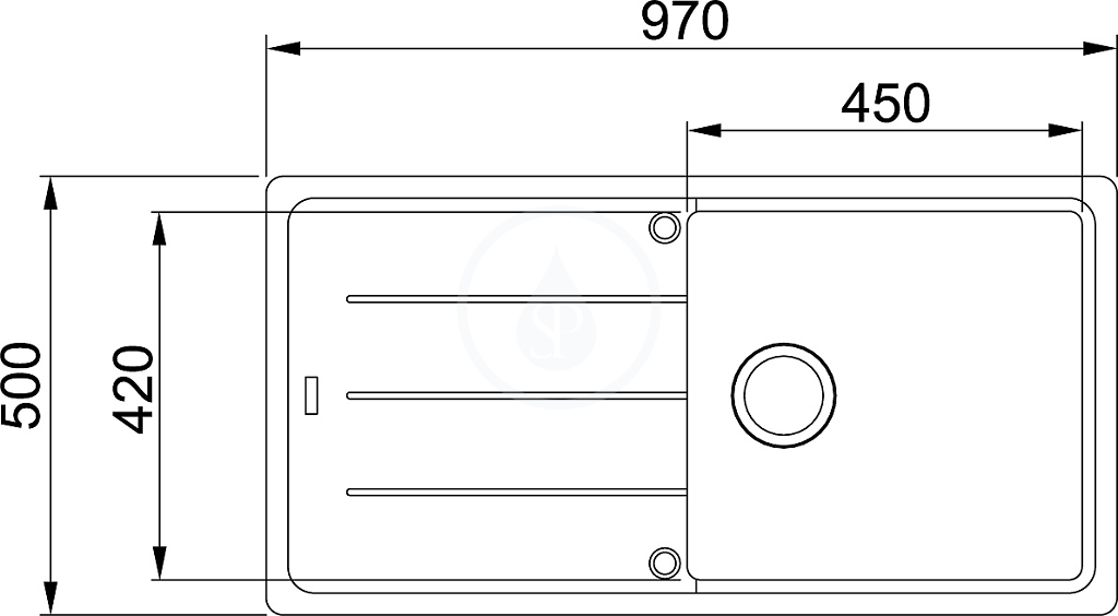 Dřez: 450 x 420 x 200 mm