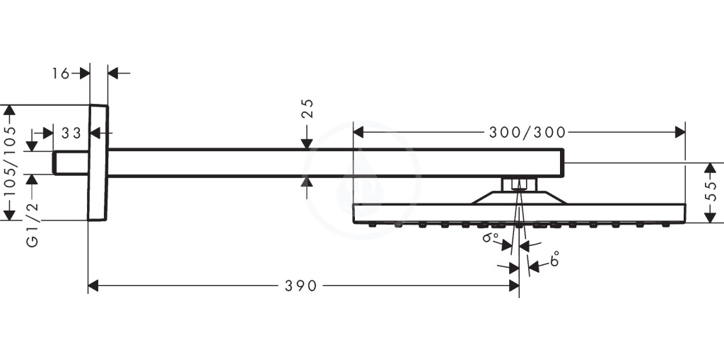 Horní sprcha E 300 s ramenem, kartáčovaný černý chrom