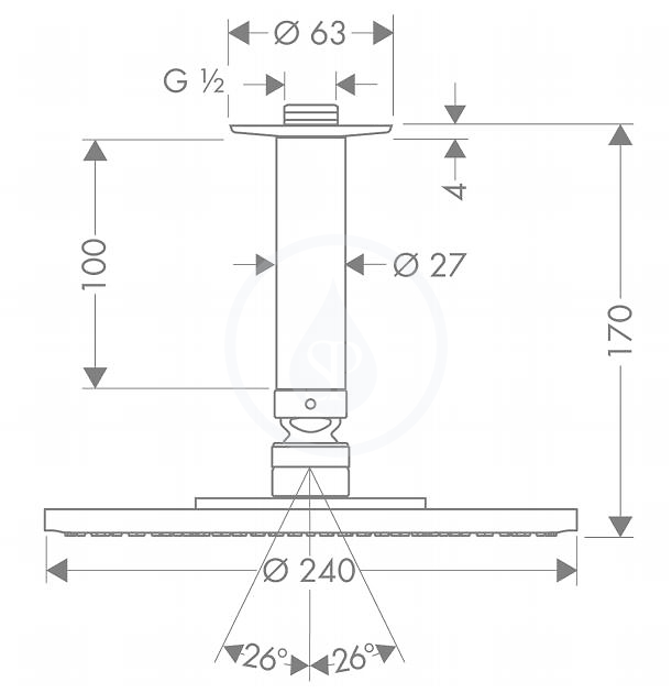 Hlavová sprcha 240, 1 proud, EcoSmart 9, přívod od stropu 10 cm, chrom