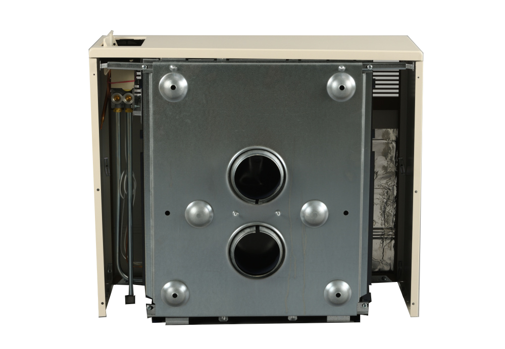 • odvod spalin a nasávání vzduchu je vyveden přes venkovní zeď systémem dvěma trubkami nad sebou o průměrech 96 mm
